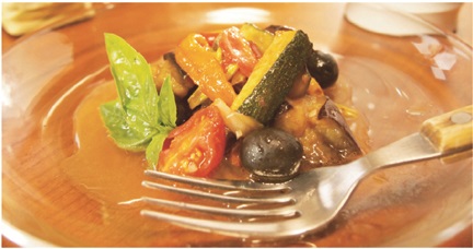 今回は「マスタードドレッシング」を使用したキッシュと、「バルサミコソース」を使用した夏野菜のマリネをご用意しております。