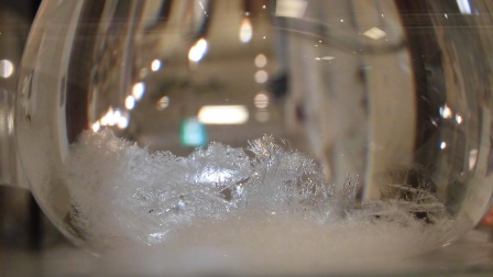 気温が高い日は透明な液体であることが多いのですが、例えば低気圧が近づいてくると鳥の羽のような結晶が底の方に出来上がってきます。