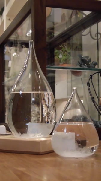 テンポドロップは天候の変化に応じて様々な表情の結晶化を繰り返す「ストームグラス」というものをおしゃれなインテリアにしたものです。