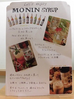 フランス産の「MONINシロップ」を使ったドリンクです。