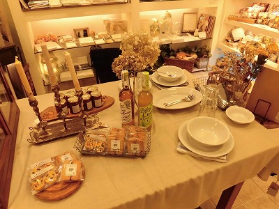 このように地下のレジ近くに、ダイニングテーブルの上に食器などと