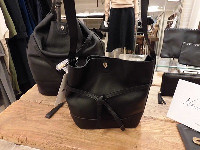 しっかりとしたベースの縦長ソフトバケットバッグです。