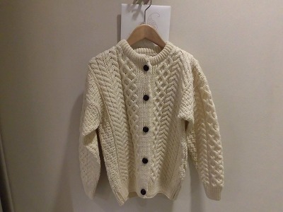 こちらも同じくアラン模様があしらわれておりますが、ボタンが付いていています!