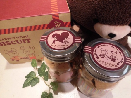 ビスケットは可愛いジャッキーデザインのボトルと缶入り。中身を食べ終えたボトルと缶は小物入れなど使い道は様々!贈り物にも最適です!!