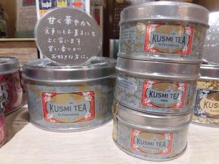 クスミティーは缶や箱の模様もすてきで、ギフトにもおすすめしています。