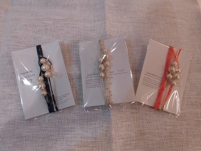 コットンパールを使っていて、まるでピアスやネックレスのよう。アクセサリーをつける感覚で使えるのがうれしいですね。