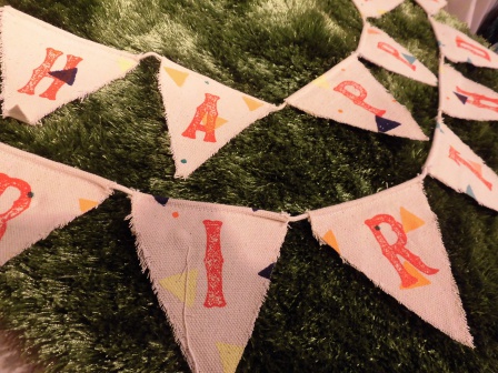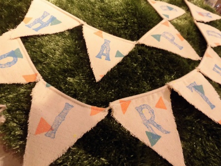 お色がレッドとブルーです。HAPPYとBIRTHDAYと、2段ガーランドになっていますのでおうちの壁に合わせて飾り付けができます。