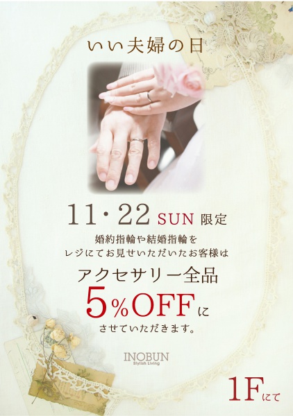 【11/22良い夫婦の日、アクセサリー5%OFF】