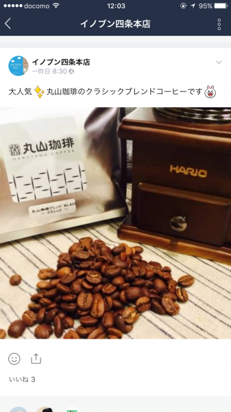 イノブン四条本店ではLINEのタイムラインを毎日更新中です。