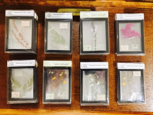 本物の押し花を一つずつハンドメイドでガラス板にはさみ制作されたグリーティングカードは、余白の部分にマジックなどで メッセージをお書きいただけます。