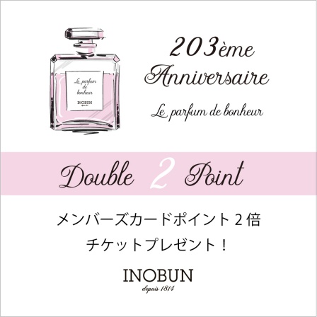 203周年の感謝をこめて、5月27日(土)限定で、商品をお買い上げいただくと、5月28日(日)~6月25日(日)の期間中ご利用いただけるメンバーズカードポイント2倍チケットをプレゼントします。