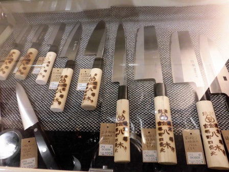 刺身包丁、菜切包丁、ペティナイフなどがズラリ……柄の焼き印が目をひきます。