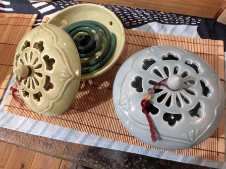 アジアンテイストなデザインと色合いが美しい陶器製の蚊遣りです。