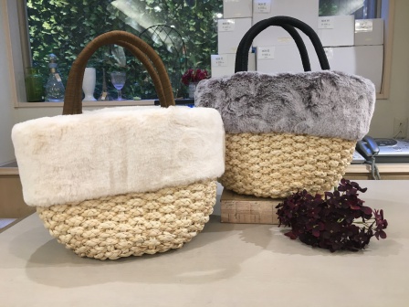 なんと、、、かごバッグにファーがくっついちゃいました!!(笑)