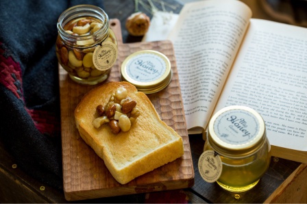 ヨーロッパと日本のはちみつがたっぷりの香ばしいナッツとおいしいマリアージュ。ミネラル豊富なナッツはアンチエイジングの面で注目されていて、美容・健康におすすめの商品です。焼きたてトーストにのせてご試食いただきます。