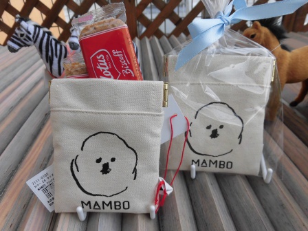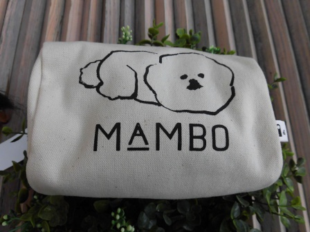 MAMBOちゃんが小さく丸まって、くつろいでいるポーチです。