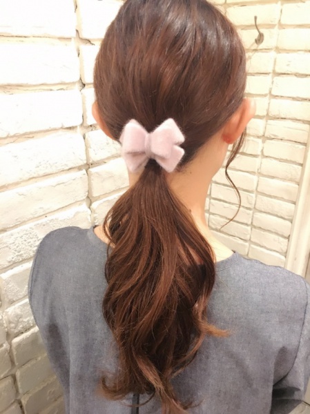 ポニーテールに付けるだけで結び目も隠せて簡単です。