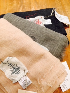 インド北部のアムリトサルという街はずれの工場で作られました。半世紀前の織機で織りあげられたストールは空気をたくさん含み、暖かいです。
