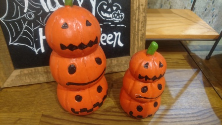 ここからは、木でできたものです。ジャックオーランタンが3つ積まれていて可愛いです♪