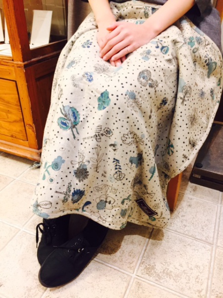 リバティエアリーコット生地という何やらたいそうな生地名がついております。タカムラが砕いて言いますと、綿100%の柔らかくて軽い生地、です。とてもなめらか~。