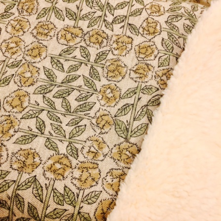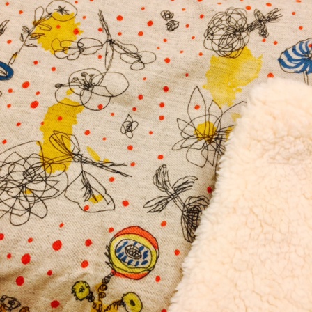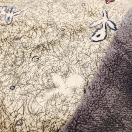 クルッと裏を向けますと、マイクロポリエステル生地を使用。タカムラがかみ砕いて言いますと、ふわっふわ生地です。ずっと触っていたくなるようなきめ細かいふわふわ~。色によって、裏のふわふわの色も違います。