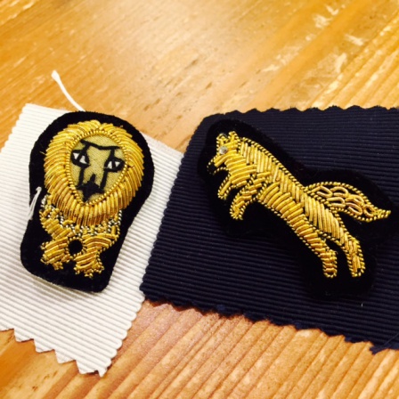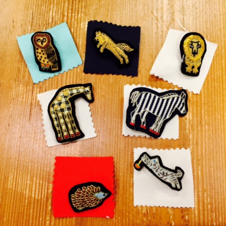 ユニークでゆるっとした雰囲気の絶妙なデザイン☆釣り針のような針で一針ずつ手作業されるザリ刺繍は、時間も手間もかかるため、少し高価なピンバッジですが、一度目にすると、何だか目が離せない…そんな愛嬌があります。