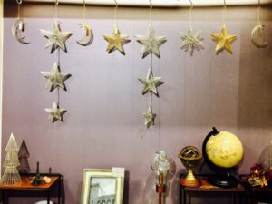数年前から地下フロアのクリスマスは、ワイヤーで作られたオーナメントを中心とした、どこか儚い感じのする賑やかな昼ではなく月明かりの下の静かな夜のクリスマスのイメージ。タカムラはこの世界観がとても好きです。コーヒーを飲み、本を読みながら…。
