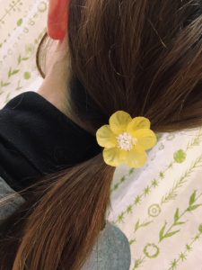ような黄色いお花がポイントのヘアゴム
