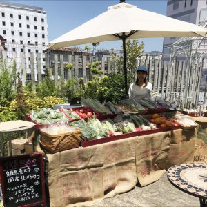 4階屋上庭園で毎回大人気のおやさいマーケットを開催します。