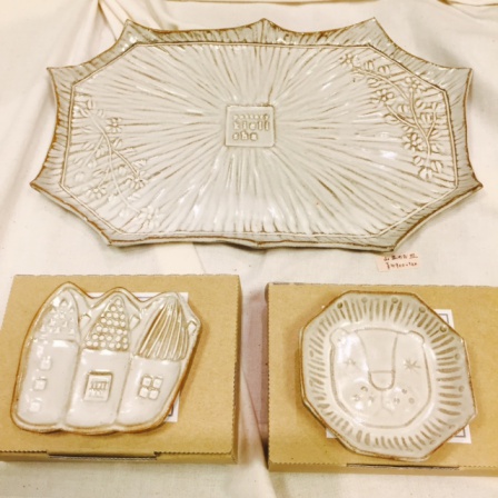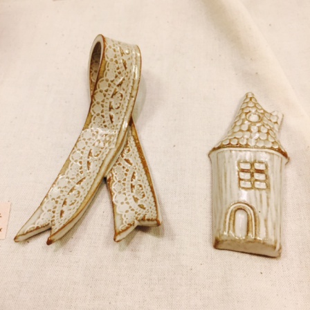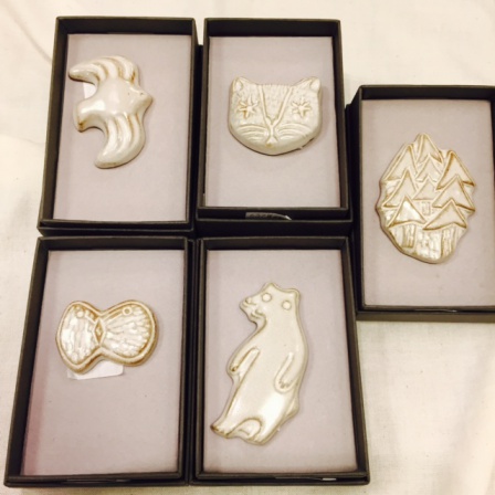 をコンセプトに詩的な風景や自然、動物をモチーフとした食器や陶のオブジェの他、陶製のブローチなど今までシーンになかったアイテムを制作されています。