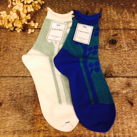 さて、本日地下フロアよりご紹介致しますのはフレンチブルの靴下。足元に彩りを与えてくれる靴下を履いて、じめじめする毎日を少しでも明るい気持ちにいたしましょう!