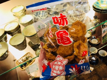 その名の通り、亀の甲羅の形をしたおせんべいで、小麦粉の素朴な味わいと、さっぱりした塩味がやみつきになり、リピートする方も多いのだとか。