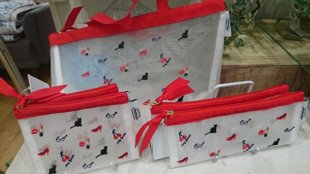 RDはメガネ、ヒール、ルージュ、さくらんぼ、ネコと通年使えそうな女の子らしくて可愛いがたくさん詰まった柄です。