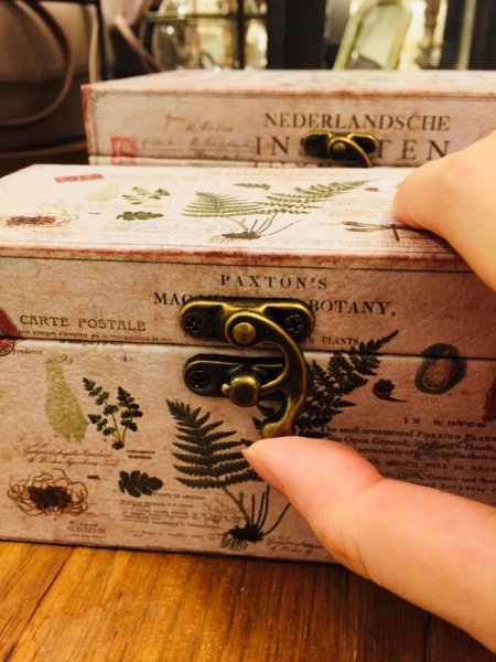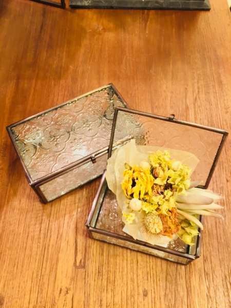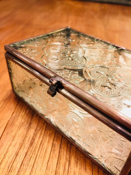 模様入りのガラスと真鍮でアンティーク調なボックス。ガラスがとても素敵です。
