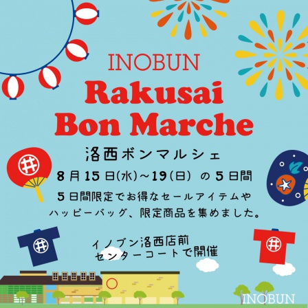 8月15日(水)~19日(日)の5日間、イノブン洛西店前、ラクセーヌセンターコートで「Rakusai Bon Marche(洛西ボンマルシェ)」を開催します。