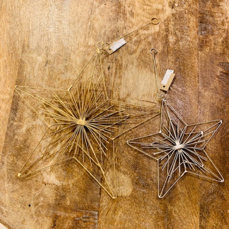 こちらは立体ではなく比較的平面の星形オーナメント。クリスマスツリーの上にあるような星ですね。平面なので、場所を取らずに飾れます。