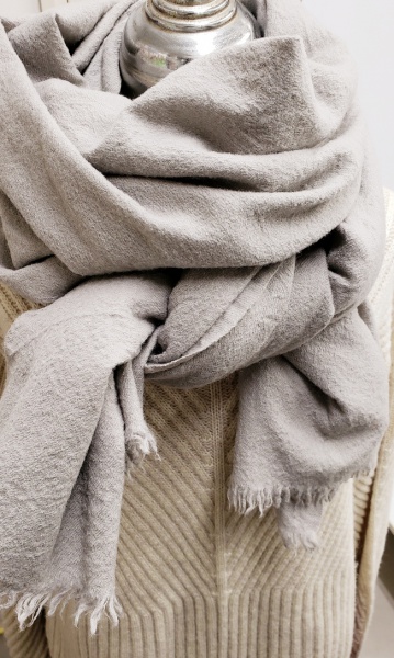 まずはアウター代わりにもなるこの巻き方。大判のしっかりした生地が◎