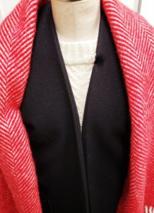 コートなどでかさばる時は、首もとスッキリのワンループで。
