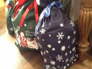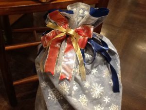 おもちゃや家電など、大きい贈り物もカンタンにかわいくなる巾着バッグです。