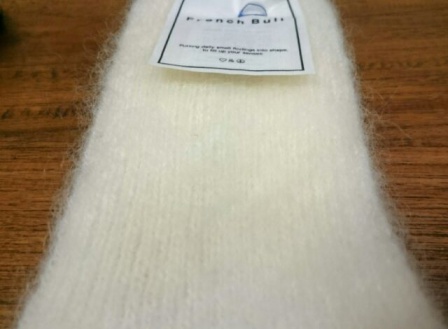 モヘヤ混の糸で編み立て、さらにふわふわに起毛加工を施しました。