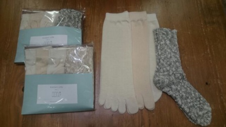 今日は、1月のイノブン四条本店のフライヤにも掲載している、French Bullの冷えとり靴下セットのご紹介です。