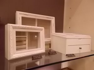 アンティーク加工がしてあるボックスです。ホワイトとブラウンの2色。リングをさせるスペースと小物を奥スペースが分かれていて、手持ちのアクセサリーをまとめて入れることができます。プレゼントにもおすすめですよ。