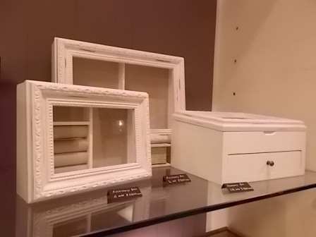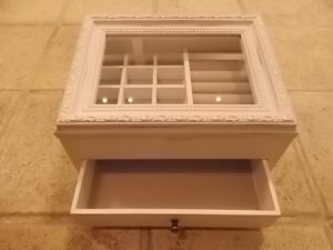 こちらは2段のもの。引き出しがついていて、ネックレスやブレスレット、小さめの時計なども入りますね。とても便利。