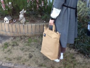 手持ちでトートに。軽量のコットンキャンパス生地のため、見た目よりもさらに軽い印象です。