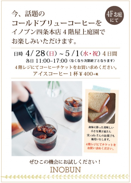 庭園にて水出しコーヒーとお菓子の販売を致します!