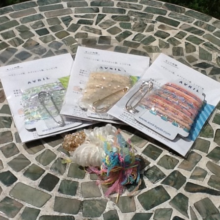 今回作るのは、そんなアヴリルのカワイイ糸を台紙にぐるぐる巻いてフラワーモチーフを作り、ブローチピンに結んで作るフラワーピンです。専門スタッフによるワークショップですので、どなたでも簡単にお作り頂けます。