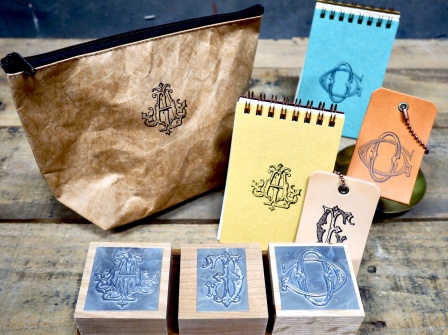 2つの文字を重なり合わせて作っているのでロゴタイプのようなモノグラムを使って、お好きなアイテムに活版印刷しませんか?