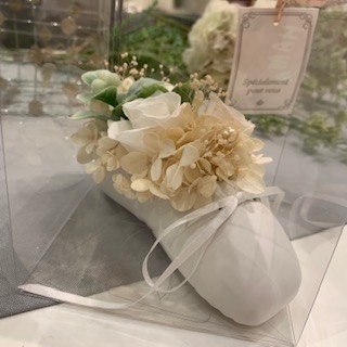 人気のバレーシューズに愛らしいプリザーブドフラワーを詰め込みました。