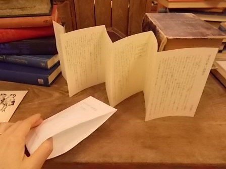 文鳥文庫とは、本の装丁がされておらず、一枚の紙が折りたたまれて、薄い袋に入っています。長くても16ページしかなくて、短いけれど、深く面白い、名作文学を集めたものです。