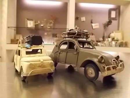 フィアットちゃんとシトロエン。かわいいです!後ろから見た姿もとても素敵ですよ。タイヤは動きません。
